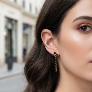 Los pendientes Leire son la pieza más versátil que tu colección de joyería estaba esperando. Combinan la intensidad de las circonitas negras con la luminosidad del baño de oro sobre plata de ley.