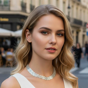 Descubre el complemento perfecto que elevará tu estilo al instante: nuestro Collar Selina de Plata de Ley Italiana, una pieza exquisita que combina artesanía de lujo y diseño atemporal. Con un ancho llamativo y un trenzado detallado, este collar no solo captura la atención, sino que también añade un toque de sofisticación a cualquier outfit que elijas.